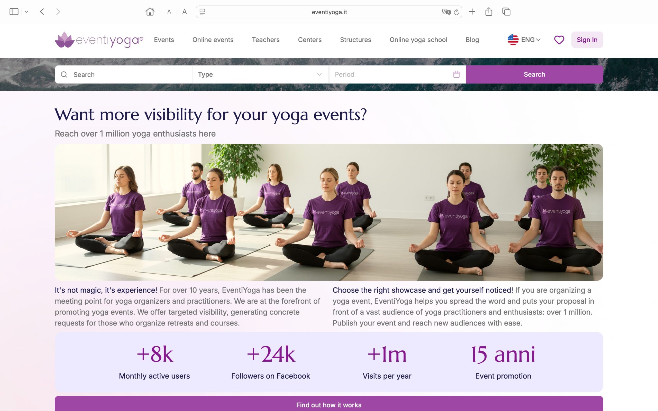 Site structure, 10+ content guidances and 20+ SEO tasks for Eventi Yoga events portal